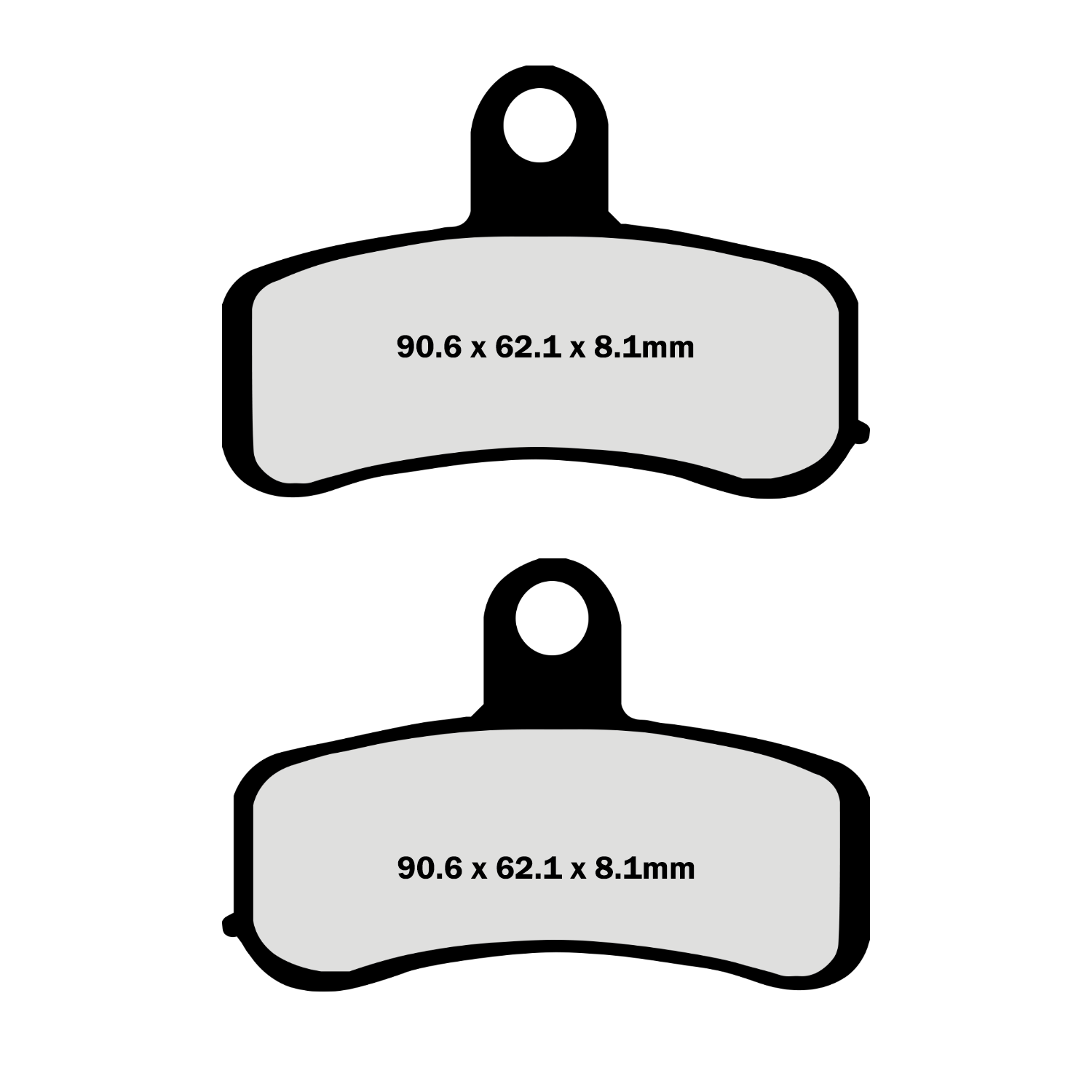 This is a great pad for putting on a stock Harley. Utilizing a specially formulated aramid compound, this tried and true brake pad will deliver 5% more stopping power than stock pads with Zero dust or noise. 30% cooler and 50% lighter than sintered pads. Note: If you want to protect the black finish on your Lyndall rotor, you must use our Z plus brake pads. (These also work great with polished rotors)