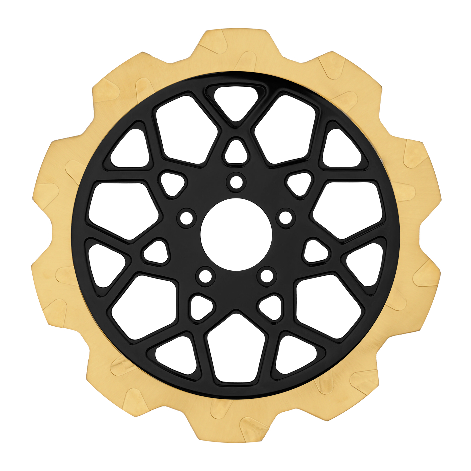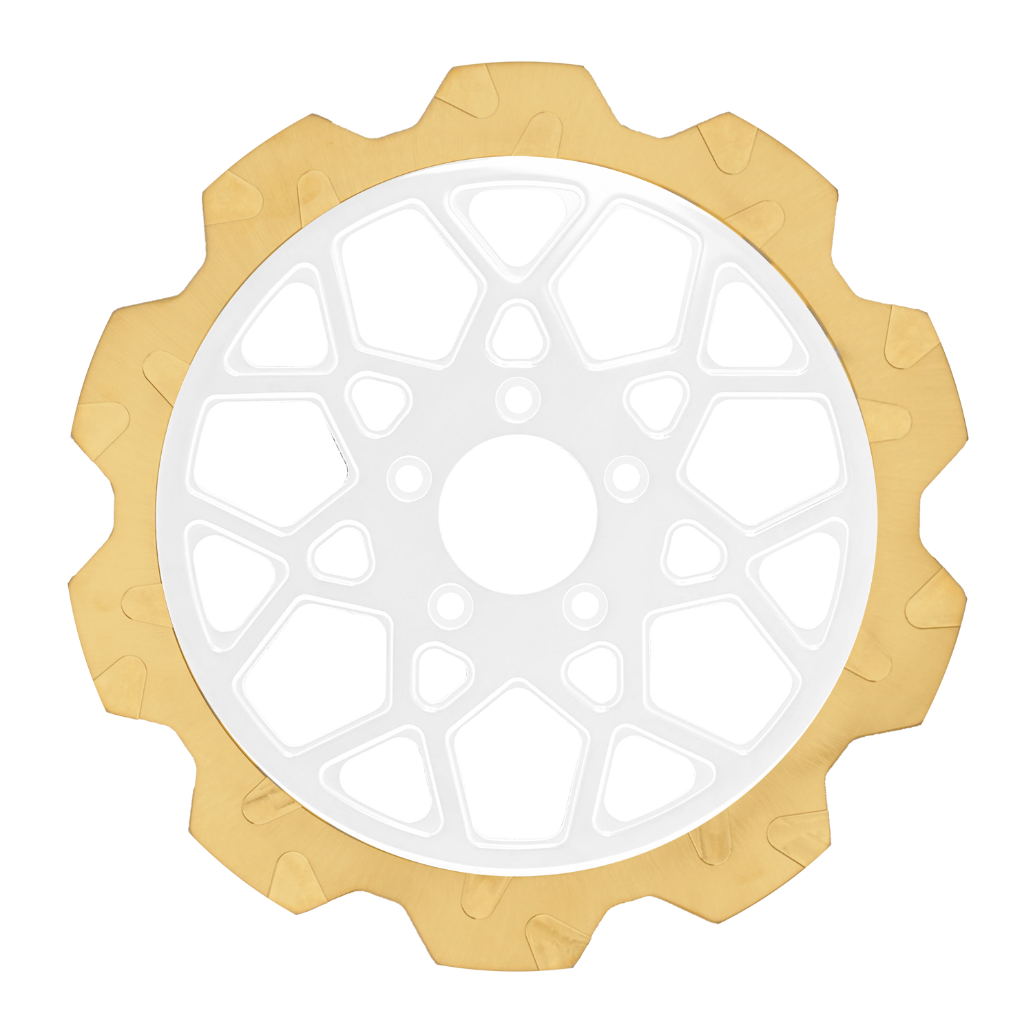 For riders who prioritize both performance and aesthetics, our Gold+ brake compound is the ideal choice. Designed to prioritize braking effectiveness, this compound removes the finish from areas that engage the brake pads, while still delivering exceptional friction rating. This pad leaves a nice contrast look of machine finish and the original gold or black color in the gas slots of the rotor.