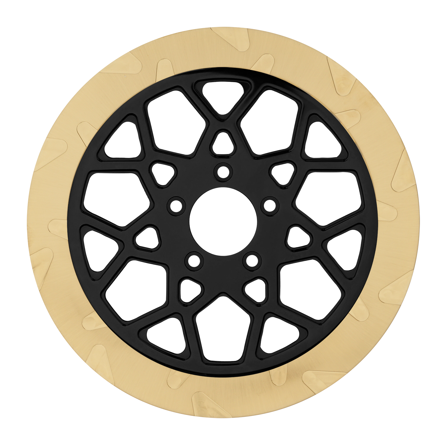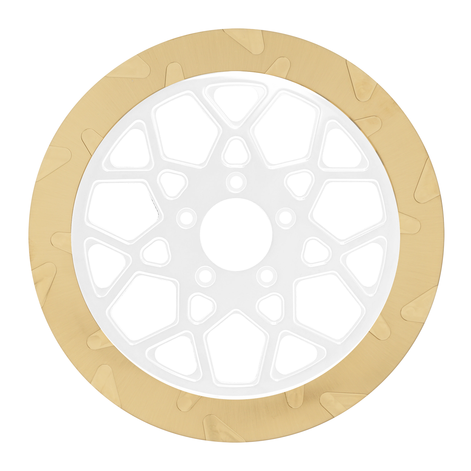 For riders who prioritize both performance and aesthetics, our Gold+ brake compound is the ideal choice. Designed to prioritize braking effectiveness, this compound removes the finish from areas that engage the brake pads, while still delivering exceptional friction rating. This pad leaves a nice contrast look of machine finish and the original gold or black color in the gas slots of the rotor.